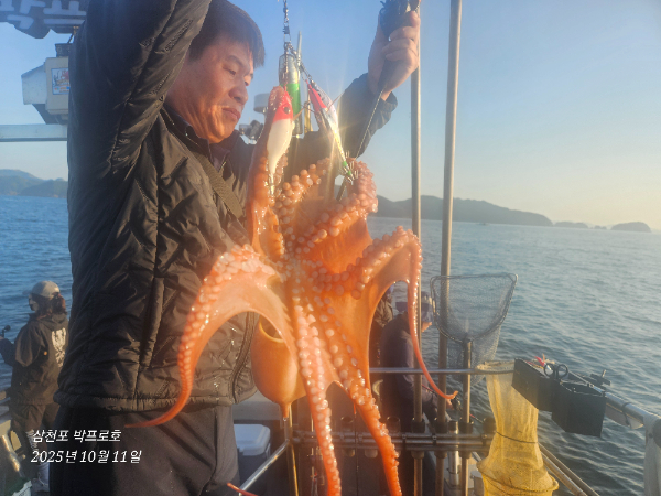 |  #조항정보 11일 주간문어 10분 조황♡ 오늘도 낚시 처음하시는분들 포함 10분 모시고 문어 잡고 들어갑니다~ 초보조사님들이 많다보니~  섬치기가..불가했네요~ ~!! 초반에 덩치들이 올라와서~! 좋아라 했는데.. 잡은거 보다..떨군게 더 많은 하루입니다ㅠ.ㅠ 잔소리 거의 안했네요ㅡㅋ 오늘 전체적으로 문어가 잘안나왔다고  하는데..마지막에 마릿수 확인하니~ 생각했던것 보단..괜찮네요ㅡㅋ 전원 4~7마리씩은 기본은 하고 입항합니다 다들고생하셨어요~^^         *** 삼천포 박프로호 예약 안내 *** 예약문의 : 010-4948-2612 오시는길 : 경남 사천시 팔포3길 56-35 홈페이지 : https://3004parkpro.sunsang24.com/ 유튜브채널 : https://youtube.com/@fishing_pro_park 네이버 밴드명 : https://band.us/@3004parkpro 네이버 블러그 : https://blog.naver.com/pmw8371 경남 사천 팔포항 삼천포 박프로호를 찾아주셔서 감사합니다. 문어 전문 최고의 선사가 되는 그 날까지! 찾아주시는 조사님들을 위해 죽어라 문어만 팝니다! 금어기는 빼고...! 먼 길 찾아주신 조사님들을 위해 항상 최고의 포인트 안내와 빠른 이동 출조 관련하여 궁금하신 점은 언제든지 편안하게 연락주시기 바랍니다. 감사합니다.   | ||